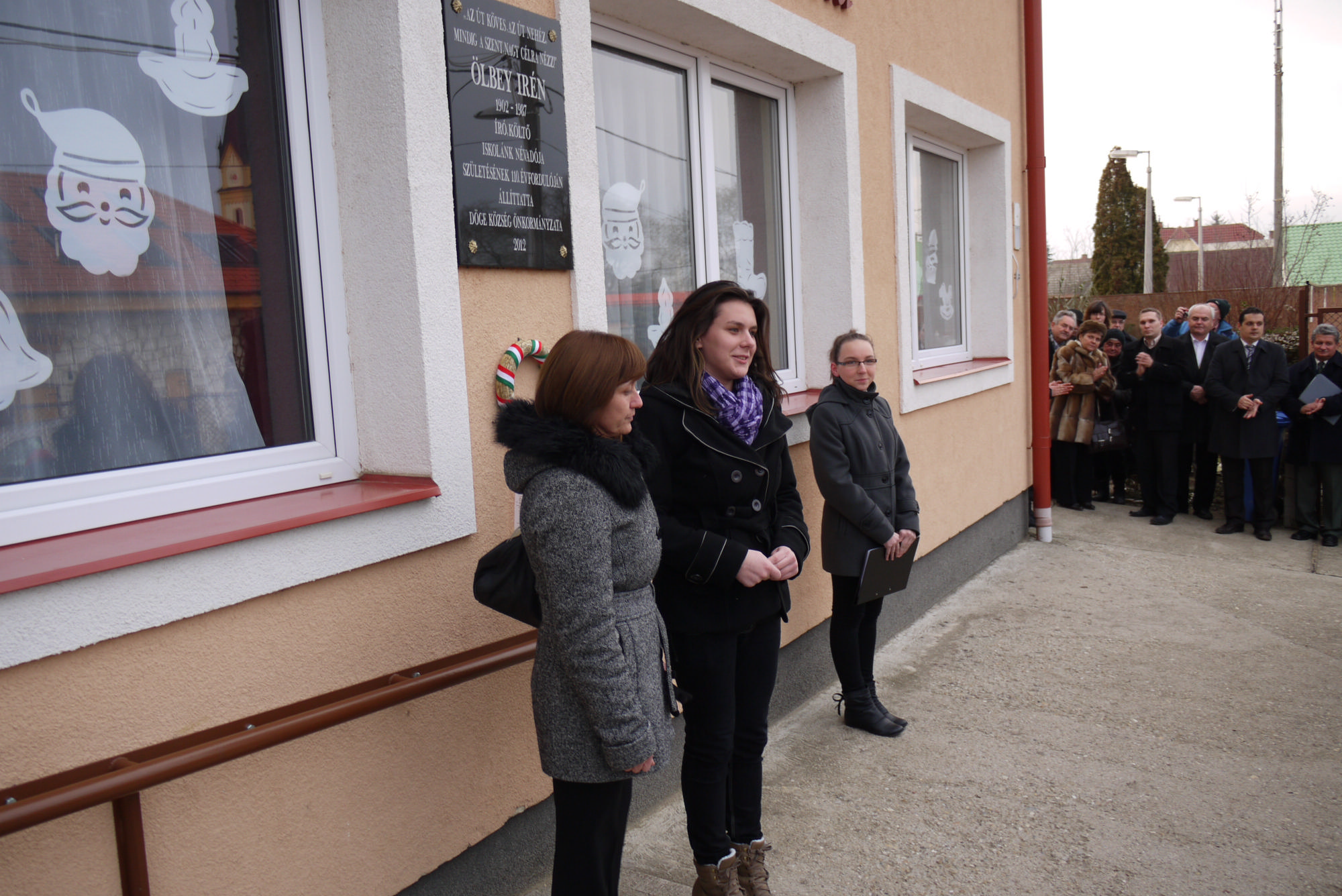 Az emléktábla avató ünnepségét 2012. december 20-án 14.30-tól tartották, melyen a résztvevők halhatták Ölbey Irén: Ének az útról című versét, Agárdy Sándor iskolaigazgató avatóbeszédét és Bakajsza András irodalmár emlékbeszédét.