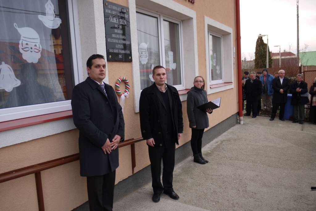 Az emléktábla avató ünnepségét 2012. december 20-án 14.30-tól tartották, melyen a résztvevők halhatták Ölbey Irén: Ének az útról című versét, Agárdy Sándor iskolaigazgató avatóbeszédét és Bakajsza András irodalmár emlékbeszédét.